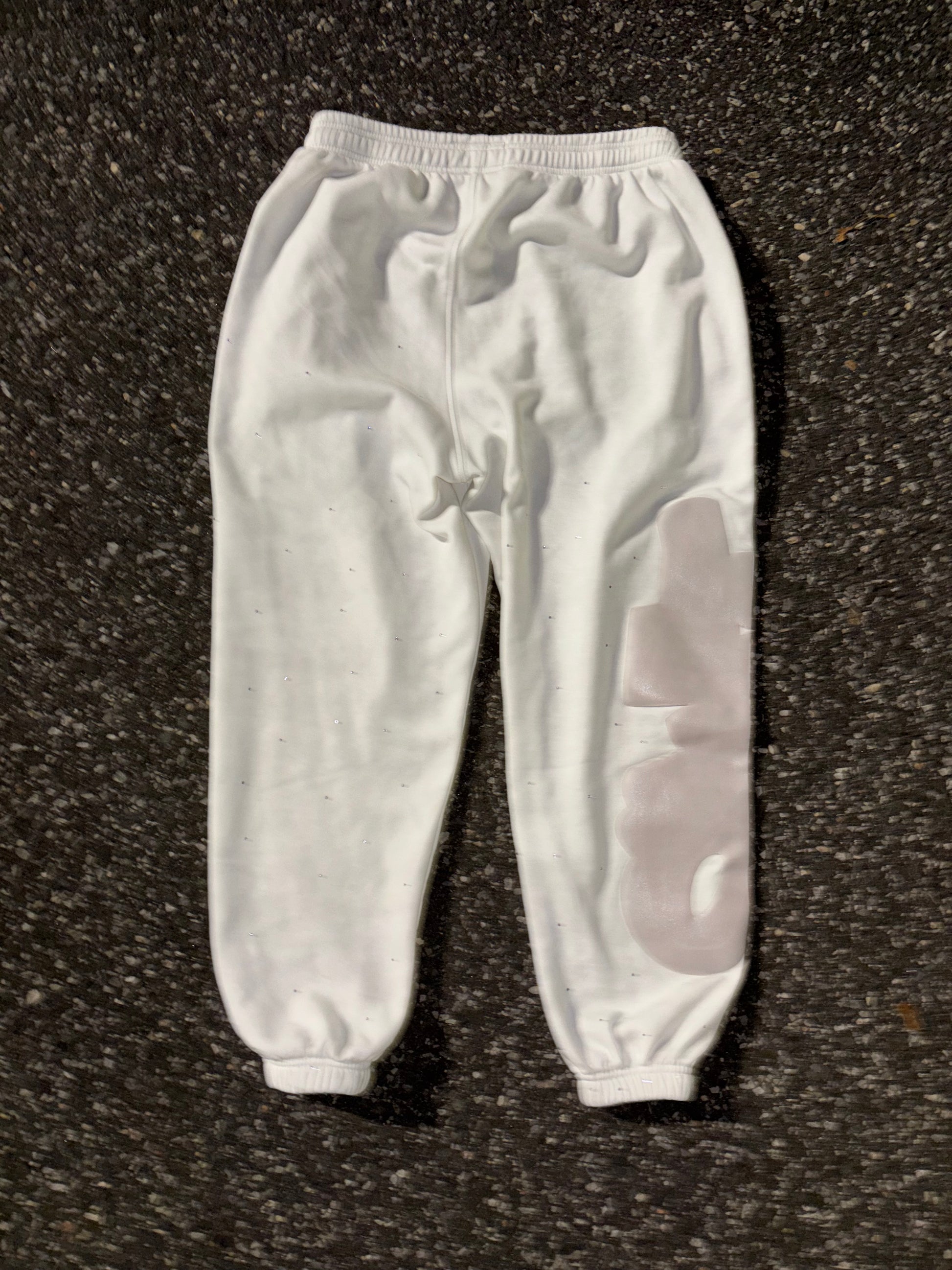 These luxury IMS sweatpants bring comfort and shine together. Crafted from premium fabric with eye-catching puff print and sparkling rhinestone accents, they offer a bold yet refined look. Designed for a perfect fit and elevated feel—luxury that moves with you.